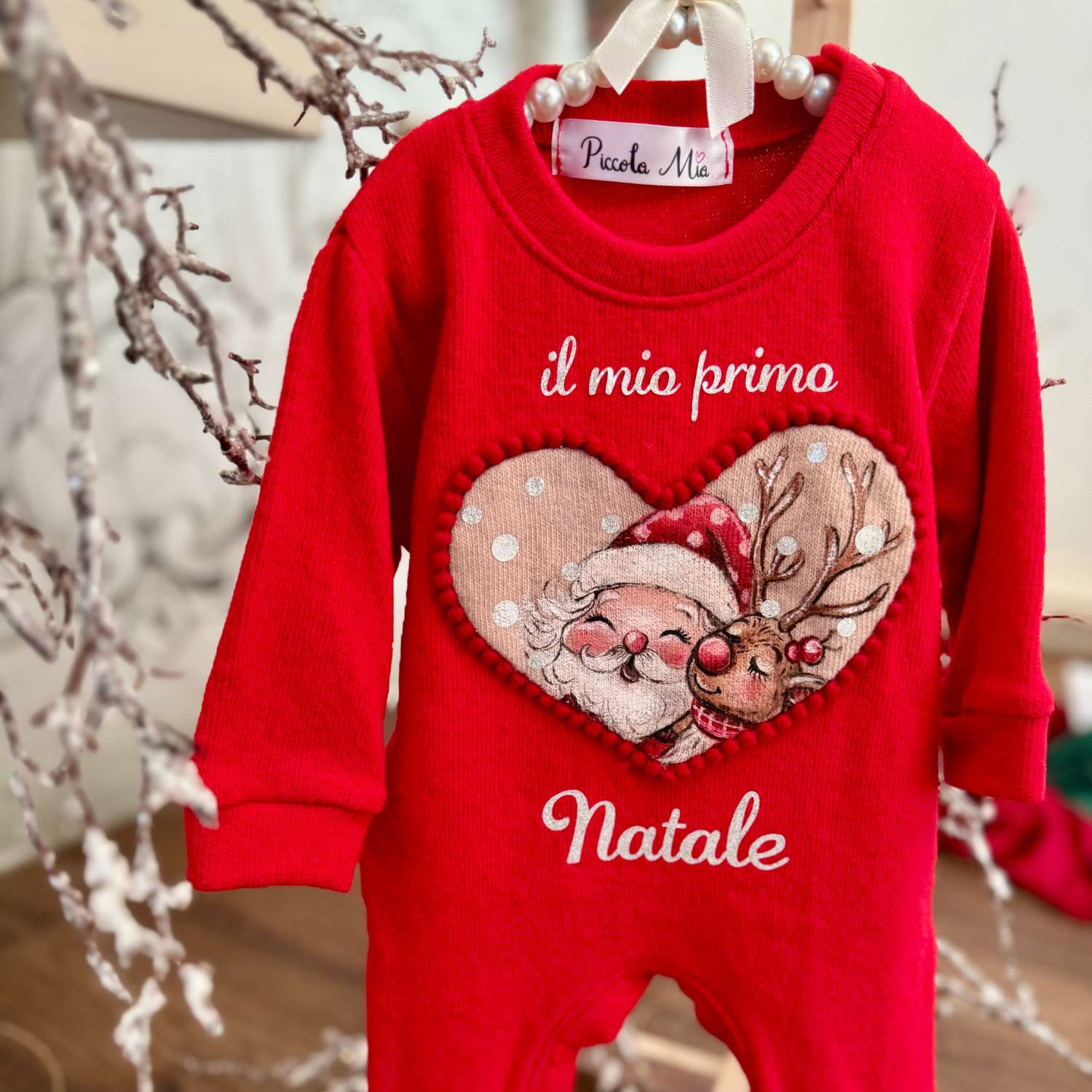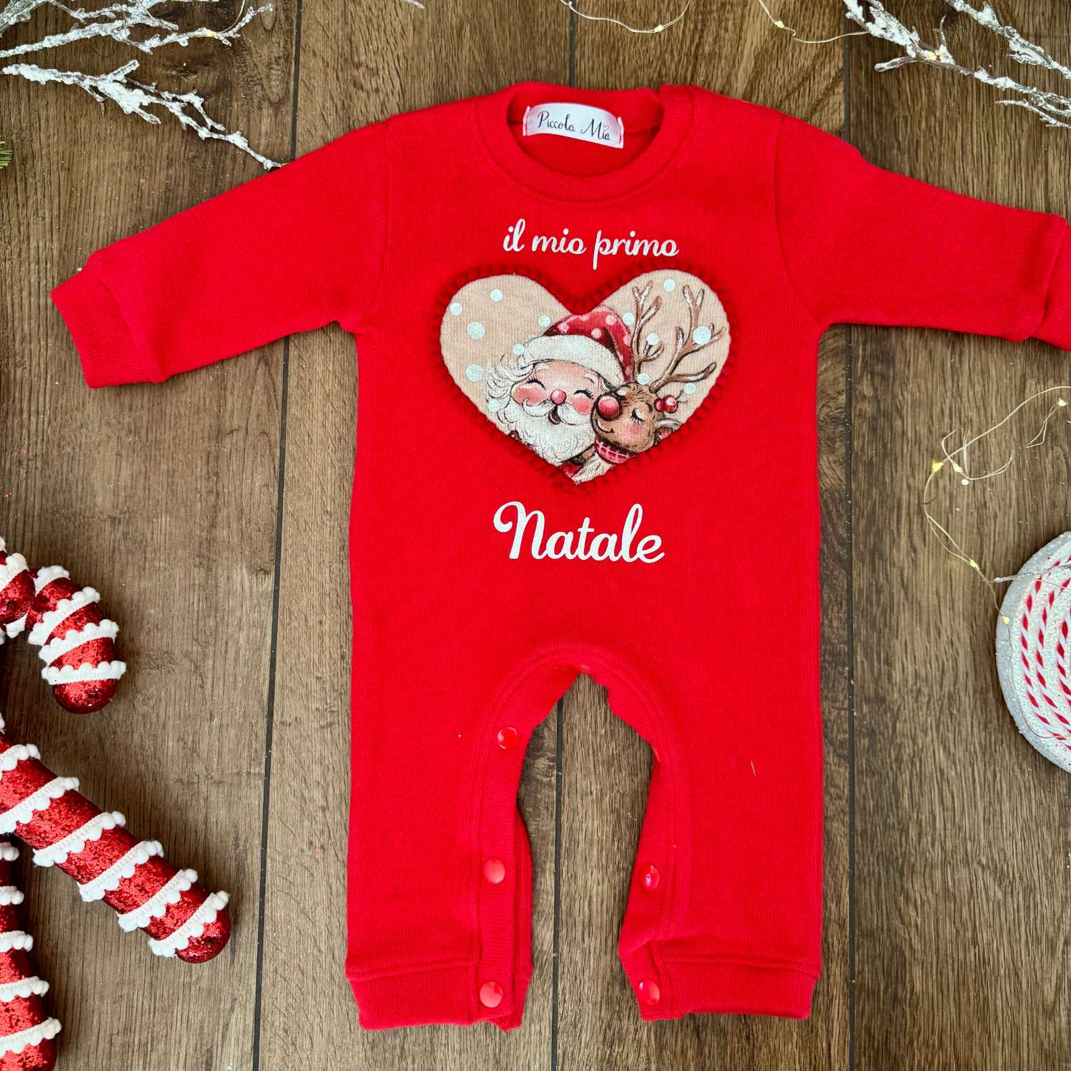 ♥️  Tutina realizzata a mano, in caldo cotone bicolore, con cuore riapplicato rifinito con passamaneria pon pon. Il disegno è dipinto a mano.  Scritta in glitter bianco.