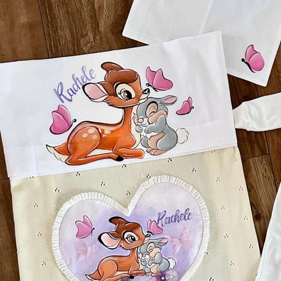 💖 Il set è composto da lenzuolino sopra, lenzuolino sotto e federa. Il dipinto è fatto interamente a mano (con materiali resistenti al lavaggio). Pesonalizza il prodotto e lo realizzerò su misura per te 😉