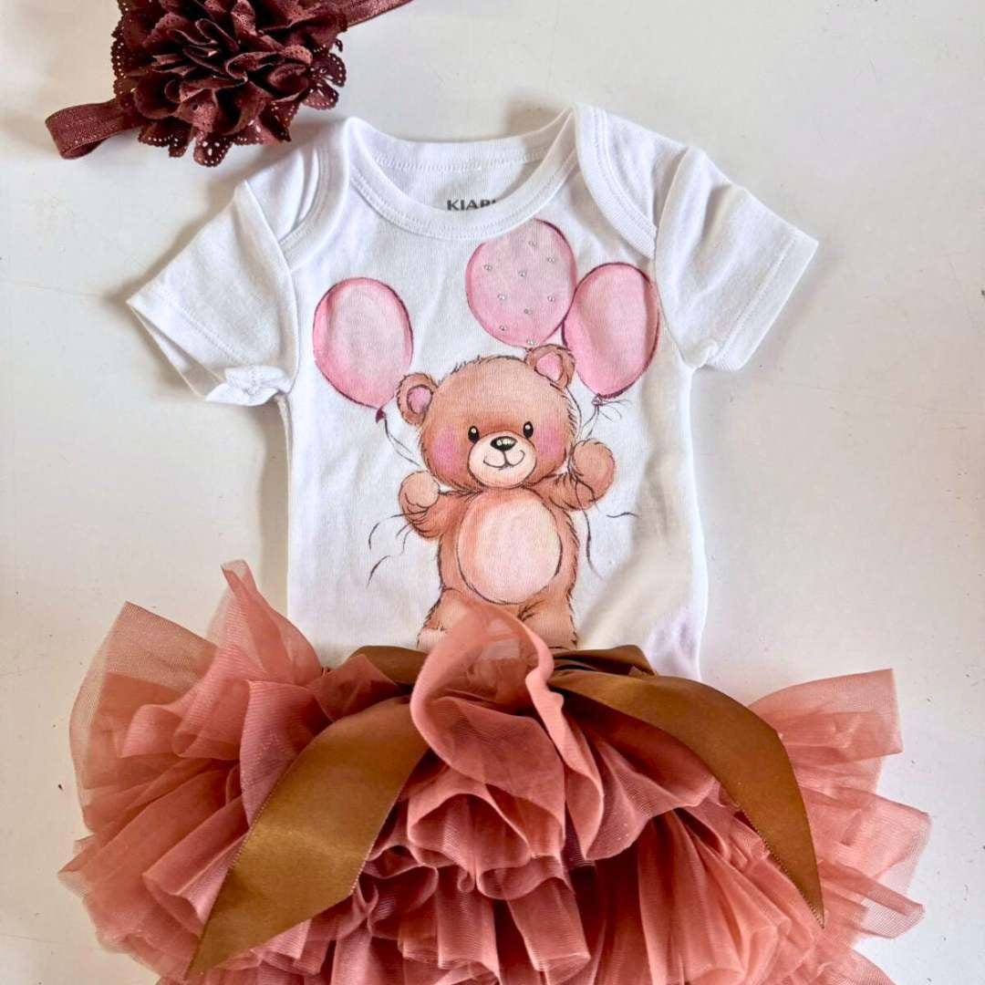 Body Orsetto + gonna 0/3 mesi - dipinto a mano