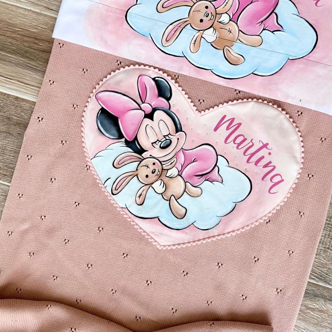 🌙 Morbidissima copertina in maglia di cotone con cuore ricamato. Il disegno e il nome sono personalizzabili. Dimensioni 70x100 cm.