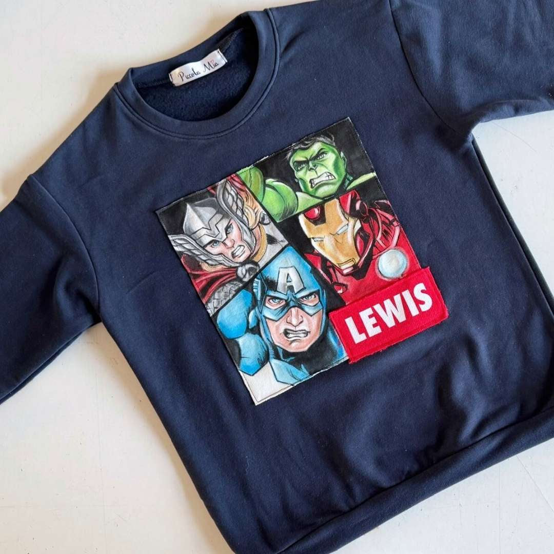 Felpa in cotone con disegno e nome dipinti a mano.